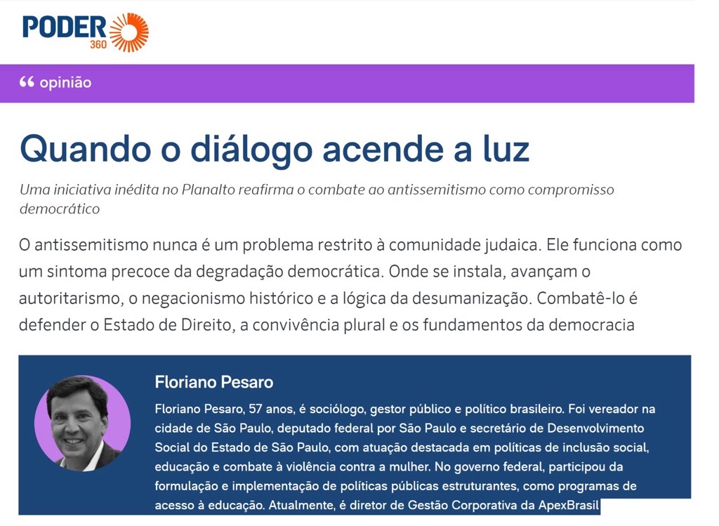 Em tempos marcados pela intensificação dos discursos de ódio, pela polarização e pela fragilização do diálogo público, iniciativas que apostam na escuta, na institucionalidade e na construção de pontes tornam-se ainda mais relevantes. Foi nesse contexto que participei de um encontro inédito no Palácio do Planalto entre representantes do governo federal e diversos setores da comunidade judaica brasileira, dedicado ao enfrentamento do antissemitismo no país.